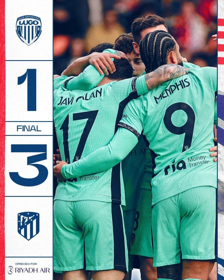 国王杯-德佩双响科雷亚建功莫拉塔中框 马竞3-1卢戈晋级