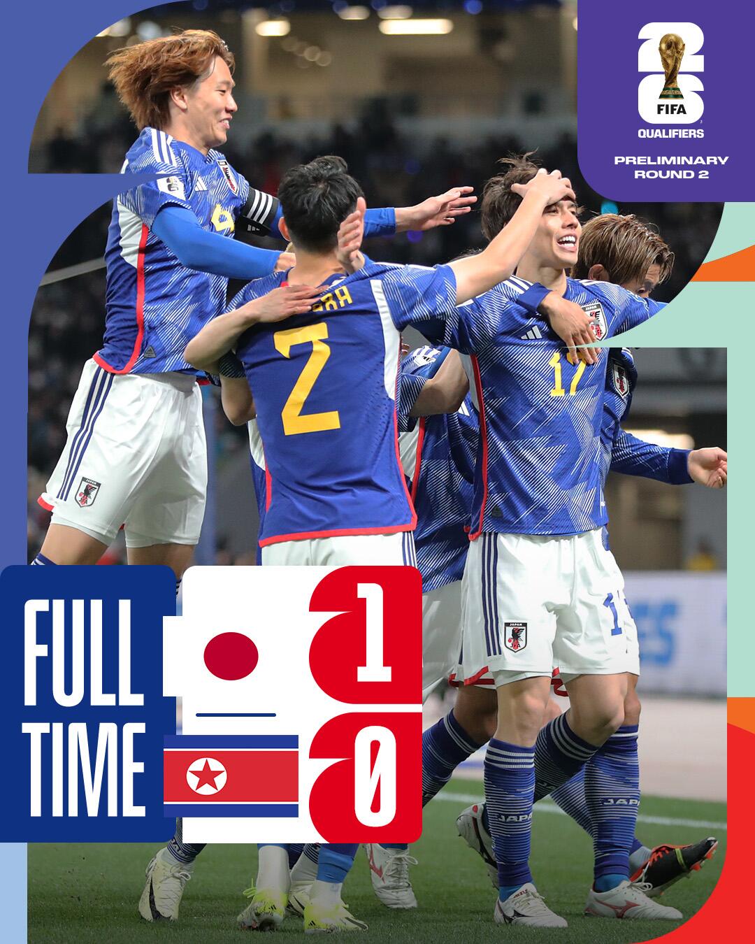 世预赛-日本1-0朝鲜三战全胜 朝鲜进球被吹1胜2负暂列小组第2