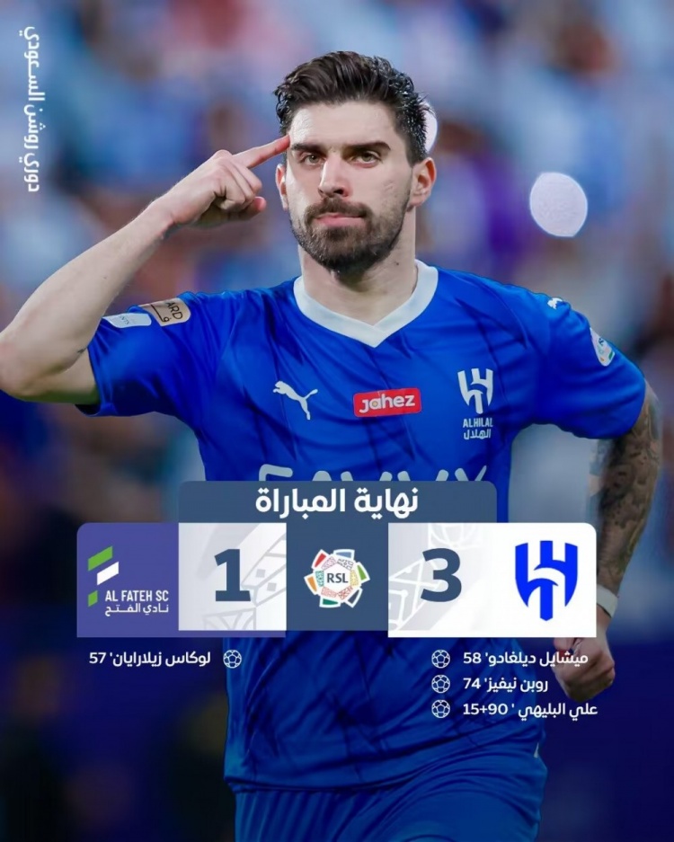 沙特联-新月3-1逆转哈萨征服28轮不败 联赛剩6轮12分领跑