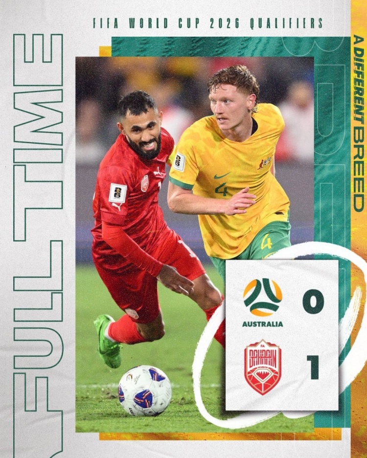 国足同组对手:10人澳大利亚主场0-1巴林 本届世预赛6连胜遭终结