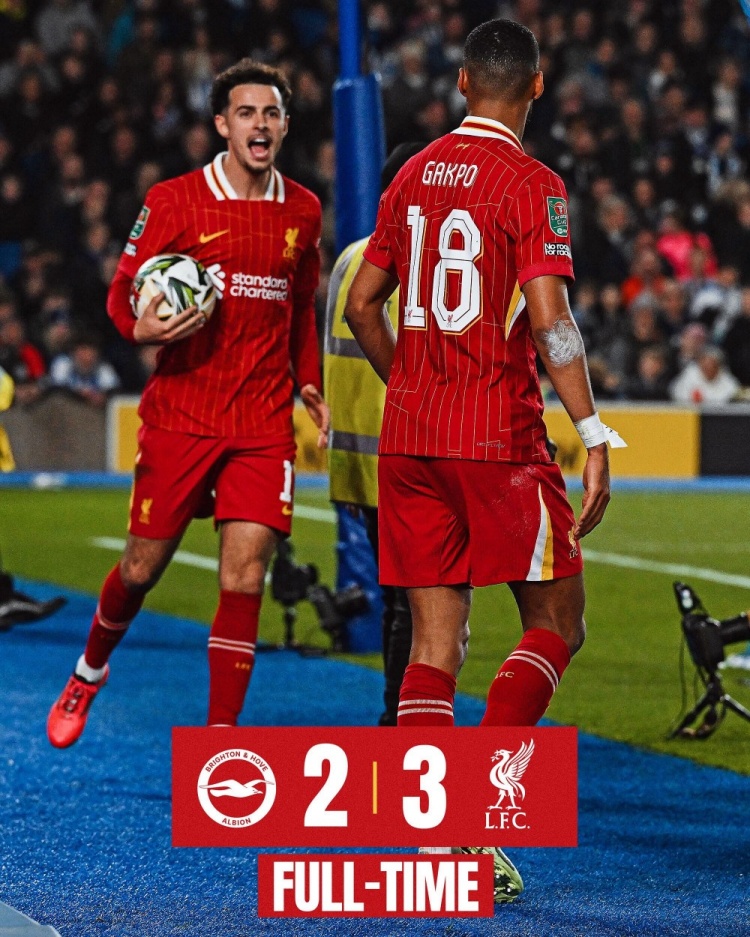 联赛杯-利物浦3-2布莱顿晋级八强 加克波双响宽萨失误送礼