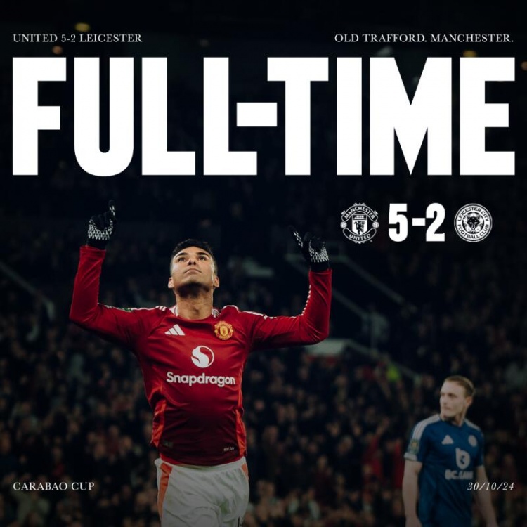 范尼首战大胜!曼联5-2莱斯特城晋级联赛杯8强 B费卡塞米罗双响