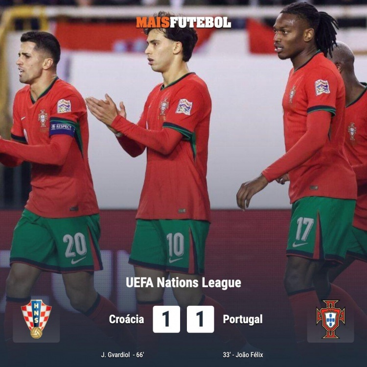 欧国联-葡萄牙1-1克罗地亚分列前2名 菲利克斯破门格瓦迪奥尔扳平