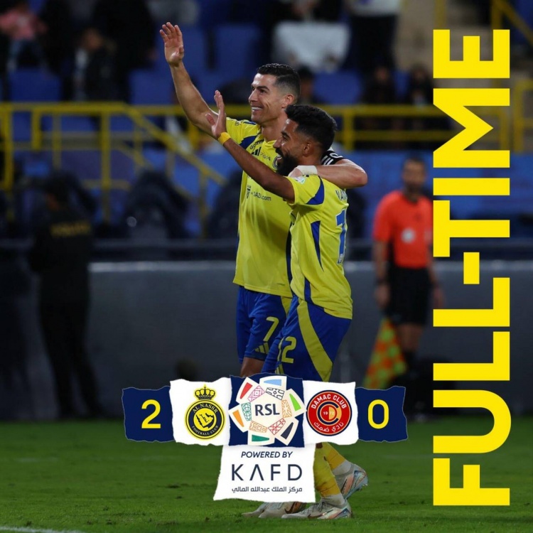 全场比赛结束,利雅得胜利2-0达马克。