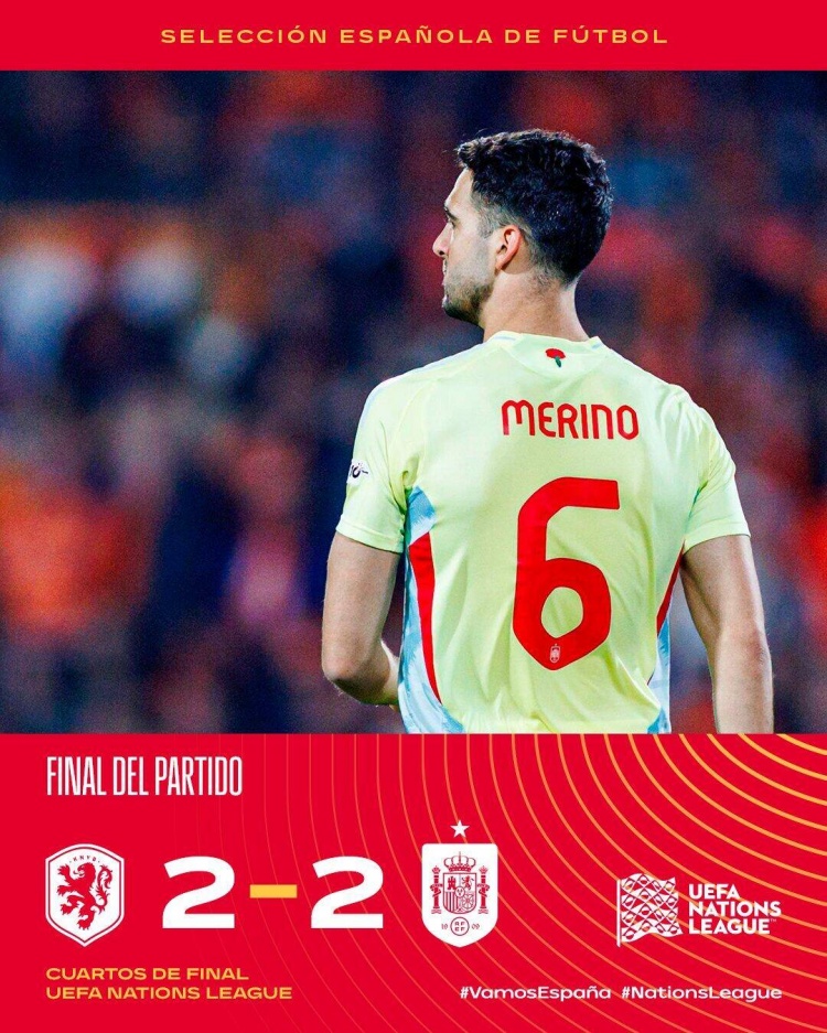 第90+3分钟,尼科-威廉姆斯左路摆脱后低射,这球被维尔布鲁根扑出,随后梅里诺补射建功,西班牙2-2荷兰。↓
