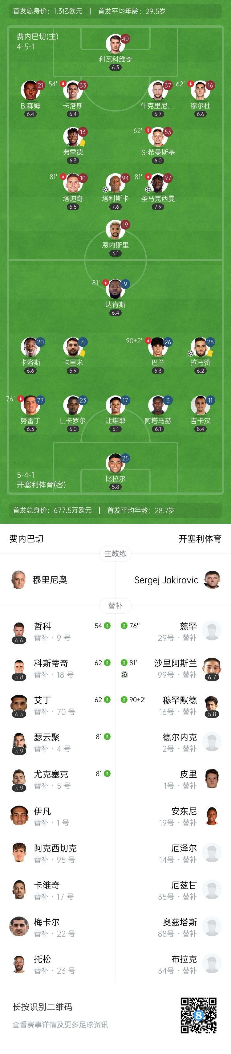 全场比赛结束,费内巴切主场3-3遭开塞利体育绝平。