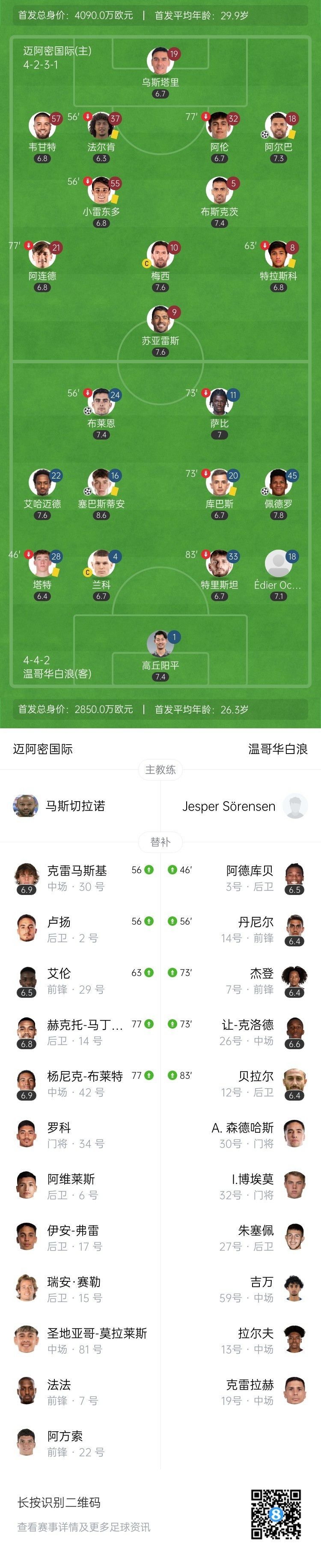 迈阿密2分钟连丢2球!温哥华总比分3球领先!第53分钟,温哥华左路突破后横传,伯哈尔特禁区内再回敲,维特跟进吊射越过门将乌斯塔里坠入网窝,迈阿密国际1-2温哥华白浪!总比分迈阿密1-4温哥华!↓