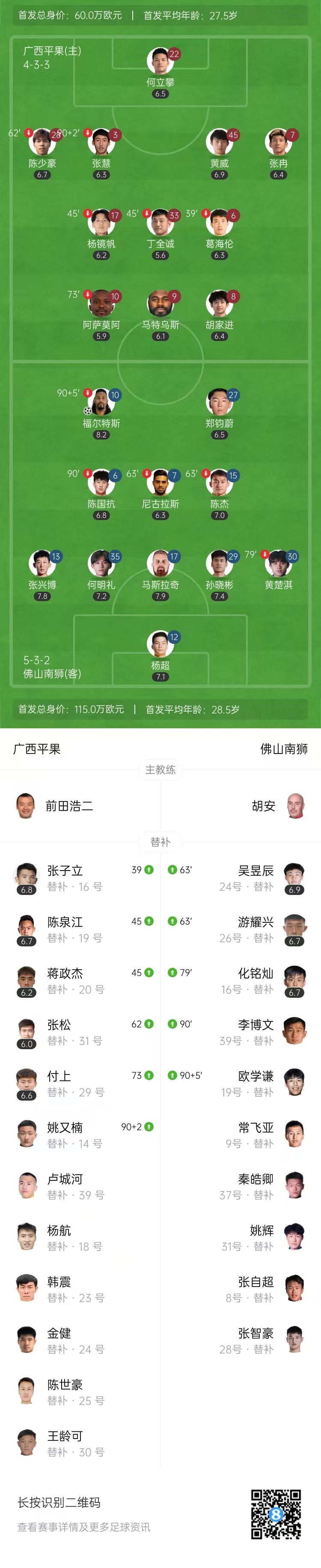 中甲-佛山南狮1-0送广西平果9轮不胜 福尔特斯破门+中柱