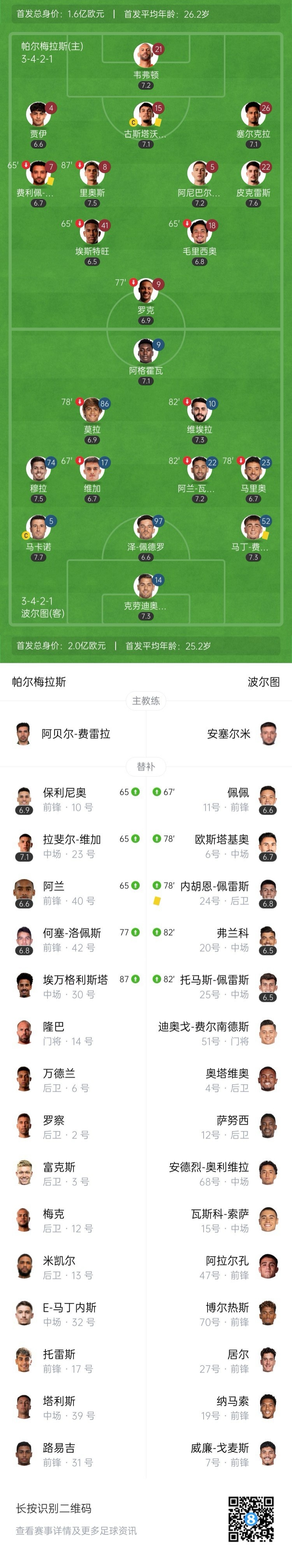 【双方首发以及换人信息】