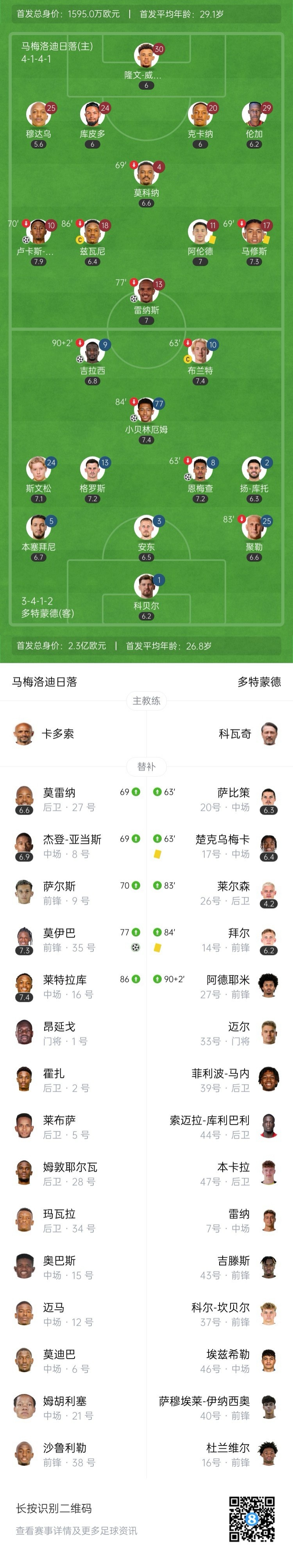 全场比赛结束,多特4-2马梅洛迪日落。
