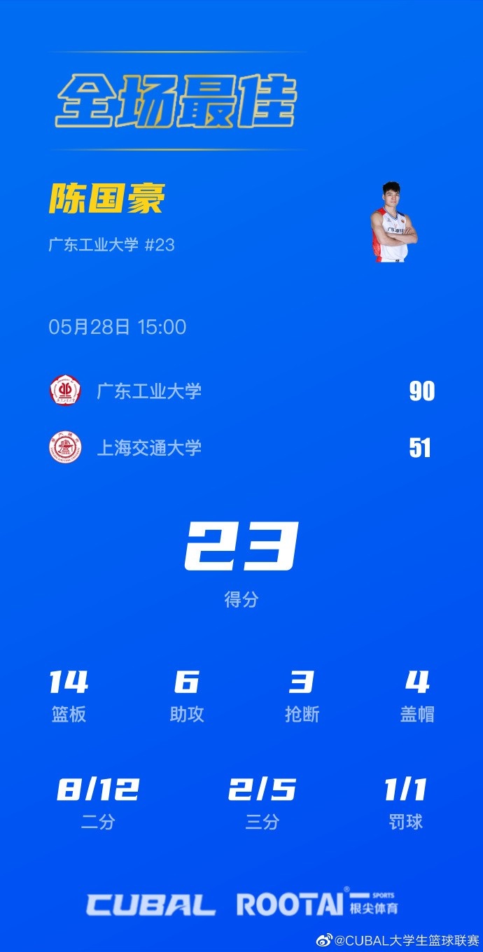 🏀CUBAL全国八强赛-陈国豪23+14+6 广工大胜上海交大先下一城