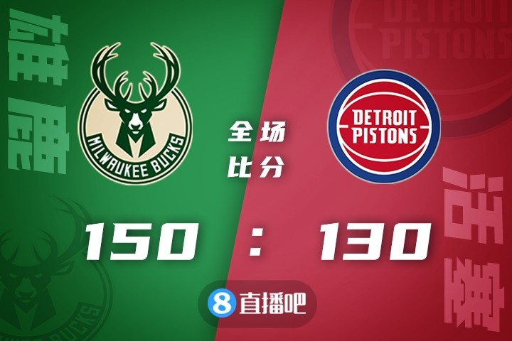 比赛开始,雄鹿开场攻防两端实现碾压,字母哥单节6中6爆砍20分帮助球队很快获得20分以上的巨大优势,博扬连续拿分苦苦支撑,雄鹿火力不减以83-55领先结束上半场。易边再战,雄鹿轻松将分差拉开到30分以上,博扬单节狂砍20分苦苦支撑,但过大的分差还是让比赛早早失去悬念,最终,雄鹿150-130大胜活塞,送给对手4连败。