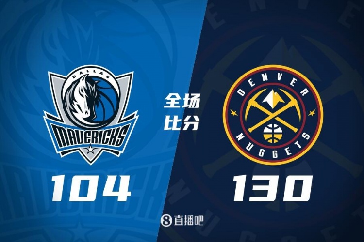 上半场,开场双方短暂相持,掘金内外开花占据场上主动,东契奇高效输出,戈登和穆雷联手拿分帮助球队保持优势,次节双方大打对攻,东契奇继续全面表现,但掘金连中三分将分差拉开到两位数,半场打完掘金68-59领先9分。易边再战,独行侠命中率骤降,掘金一波10-0取得20分优势,末节掘金持续发力打出13-4的攻击波,独行侠换下东契奇投子认负。最终,掘金130-104大胜独行侠,主场过关。