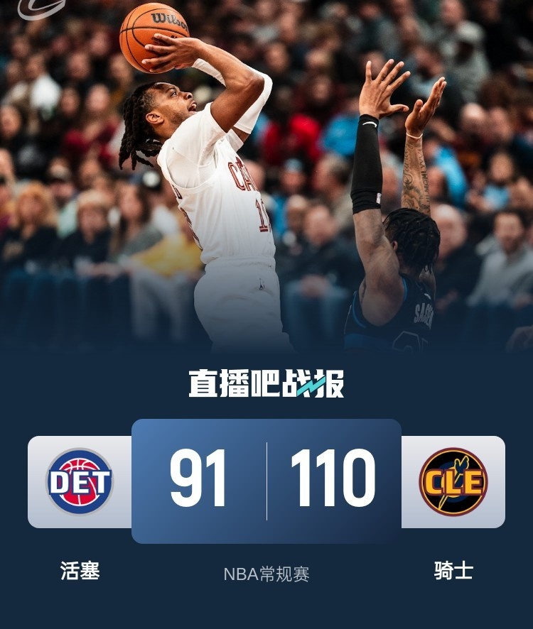 🏀加兰22+5+7 米切尔21+6 康宁汉姆26中9 骑士轻取活塞止3连败