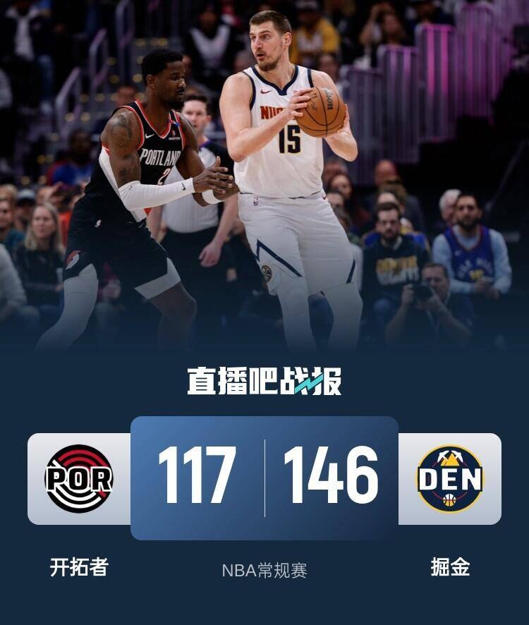 🏀约基奇三节40+7+8 穆雷被驱逐 掘金轰146分轻取开拓者迎7连胜