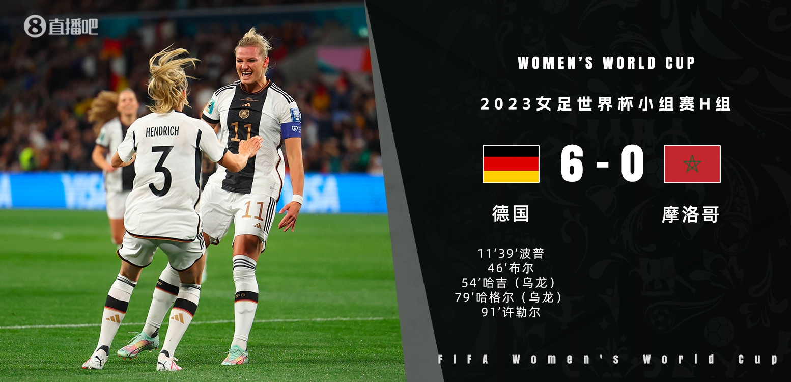 女足世界杯-德国6-0狂胜摩洛哥迎开门红 波普双响布尔许勒尔进球