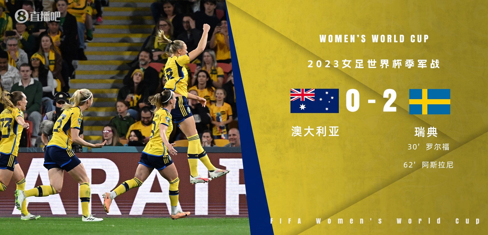 女足世界杯-瑞典2-0澳大利亚获季军 罗尔福点射阿斯拉尼建功