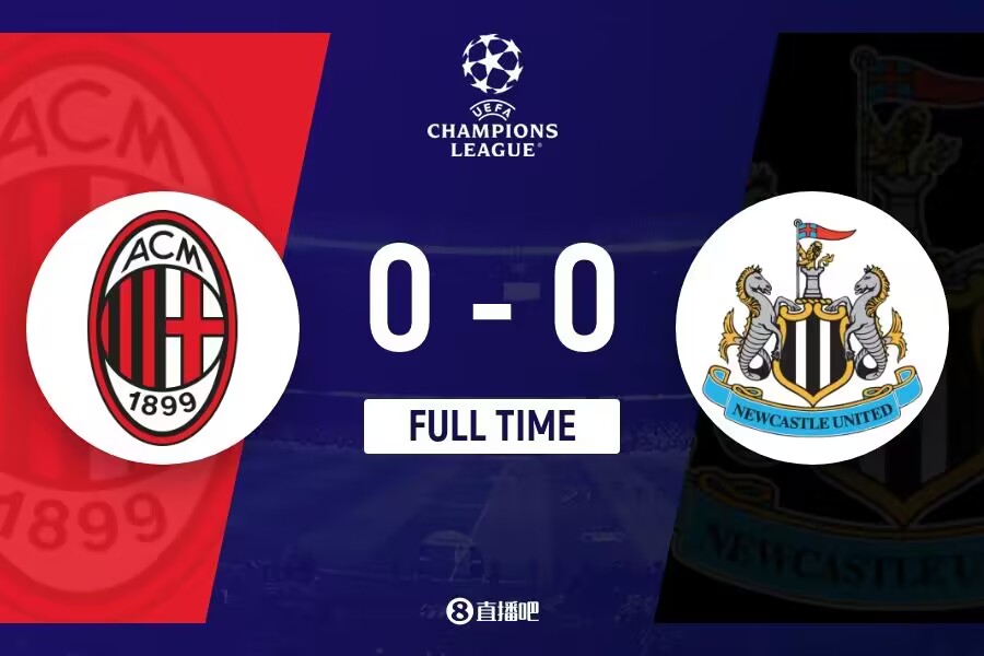 全场比赛结束,AC米兰0-0纽卡斯尔。