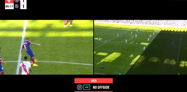 第81分钟,巴尔德左侧底线附近传中,后卫解围将球挡进自家球门,巴塞罗那1-1巴列卡诺。↓