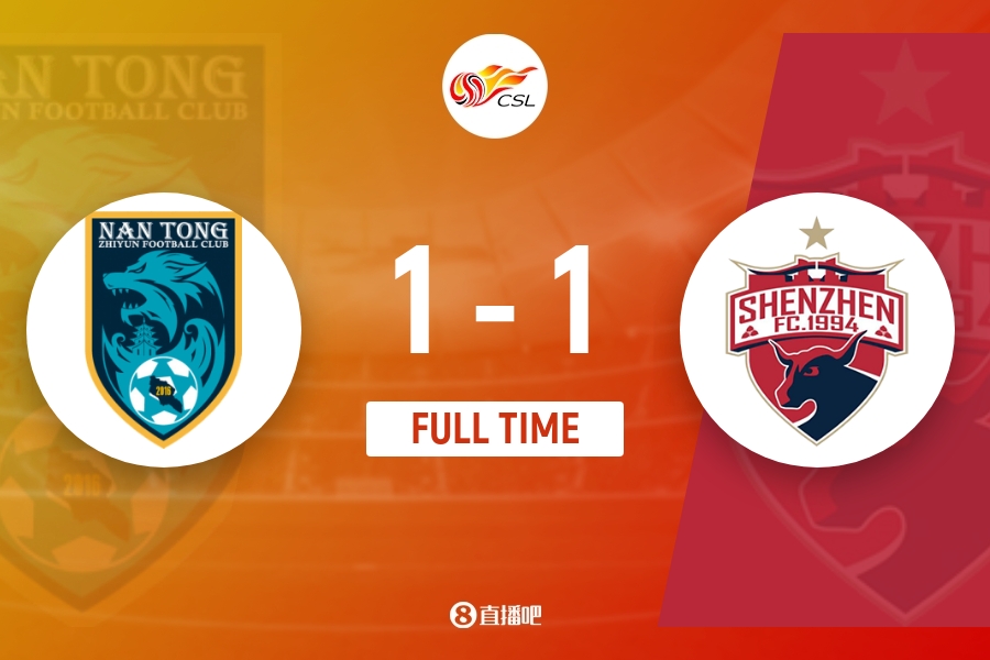 全场比赛结束,南通支云1-1战平深圳。