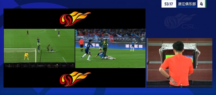 第53分钟,任航禁区内放铲铲倒布彭扎,VAR介入后主裁亲自观看回放判定点球,布彭扎亲自主罚被邵璞亮扑出,比分仍为4-0↓