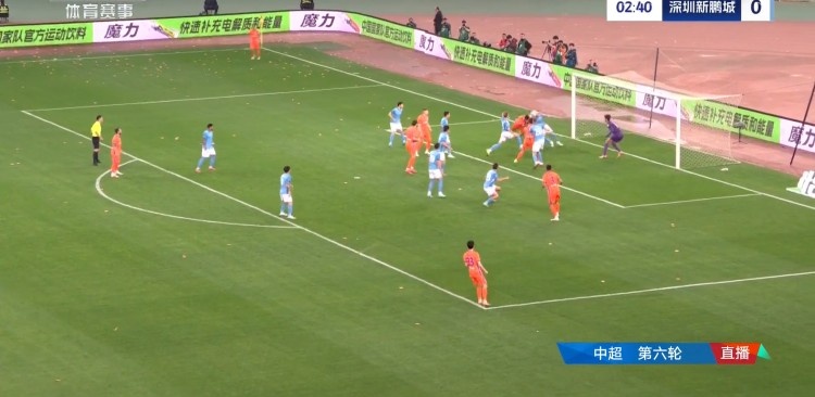第6分钟,刘洋左路禁区边沿突破造成对方犯规,李源一主罚直接打向球门方向,双方球员均未碰到,皮球飞入球网,泰山队2-0领先新鹏城。↓