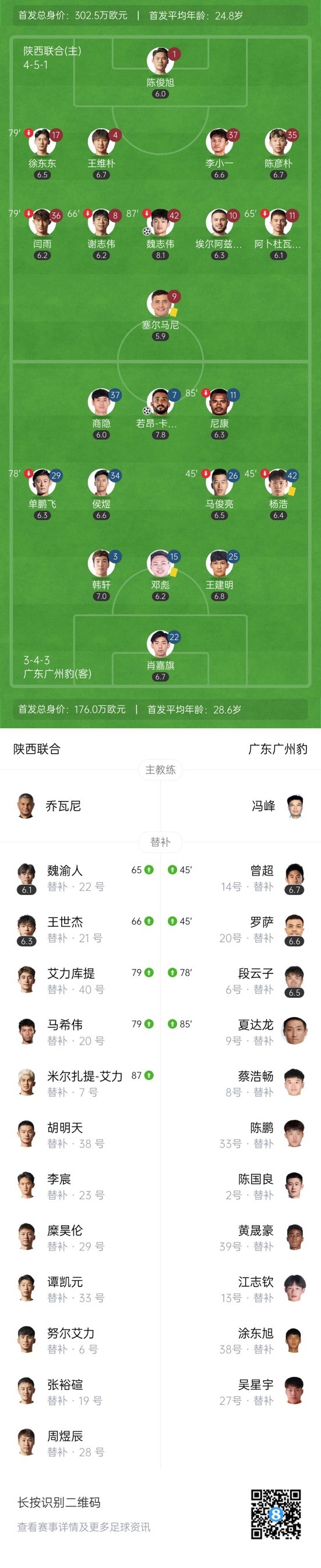 双方首发以及换人信息: