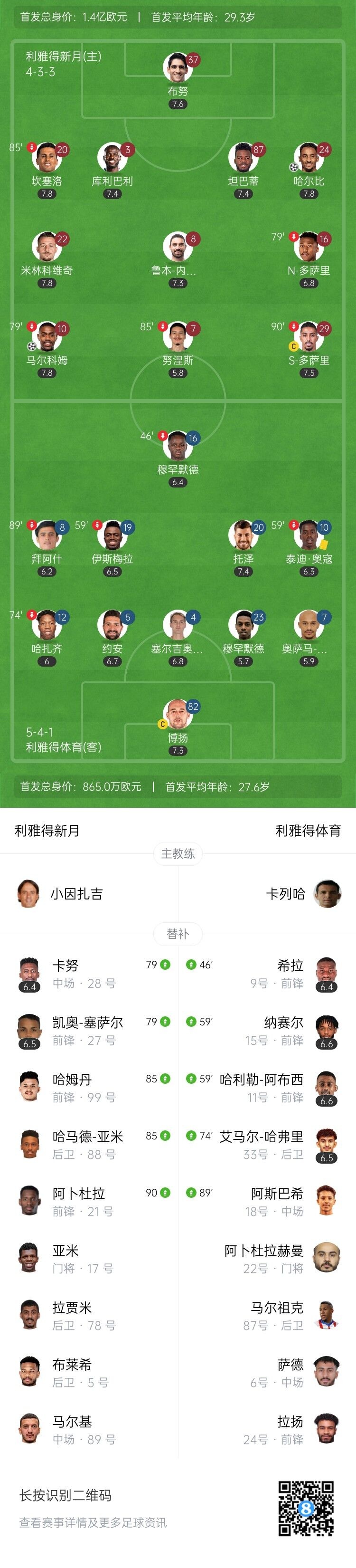 【双方首发以及替补信息】