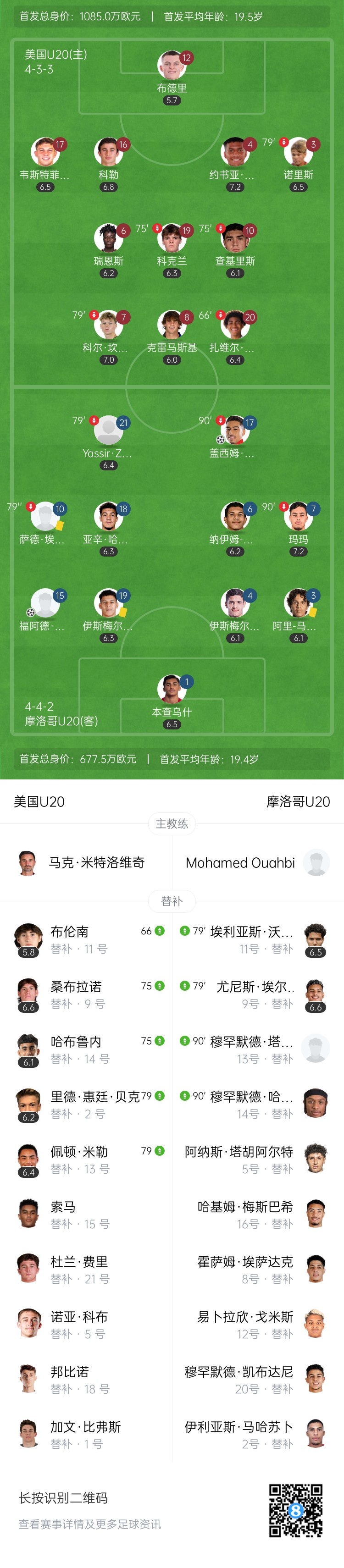第89分钟,美国后卫和门将解围失误送礼,沃马萨乌迪斯上抢得球打门被封堵,后续再横扫门前,亚辛跟进打门锁定胜局,摩洛哥3-1领先↓