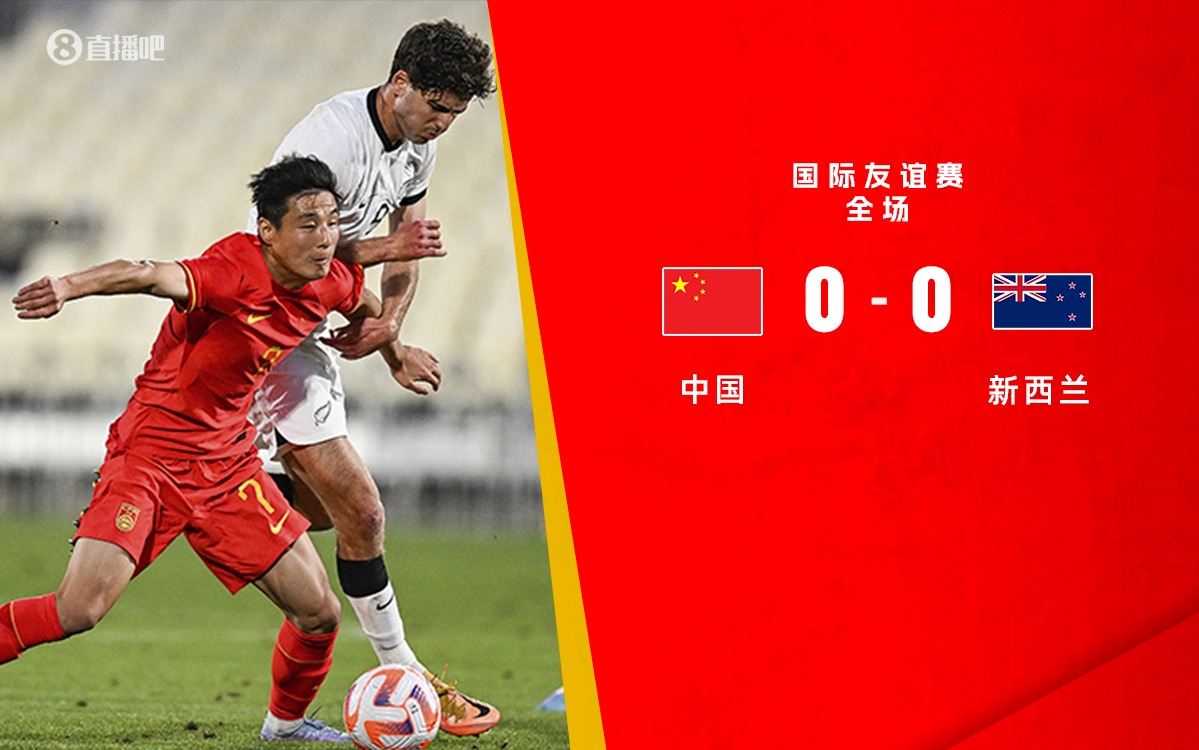 全场比赛结束,国足0-0战平新西兰。