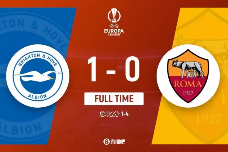 欧联-罗马0-1布莱顿总比分4-1进8强 罗马各赛事7场不败遭终结