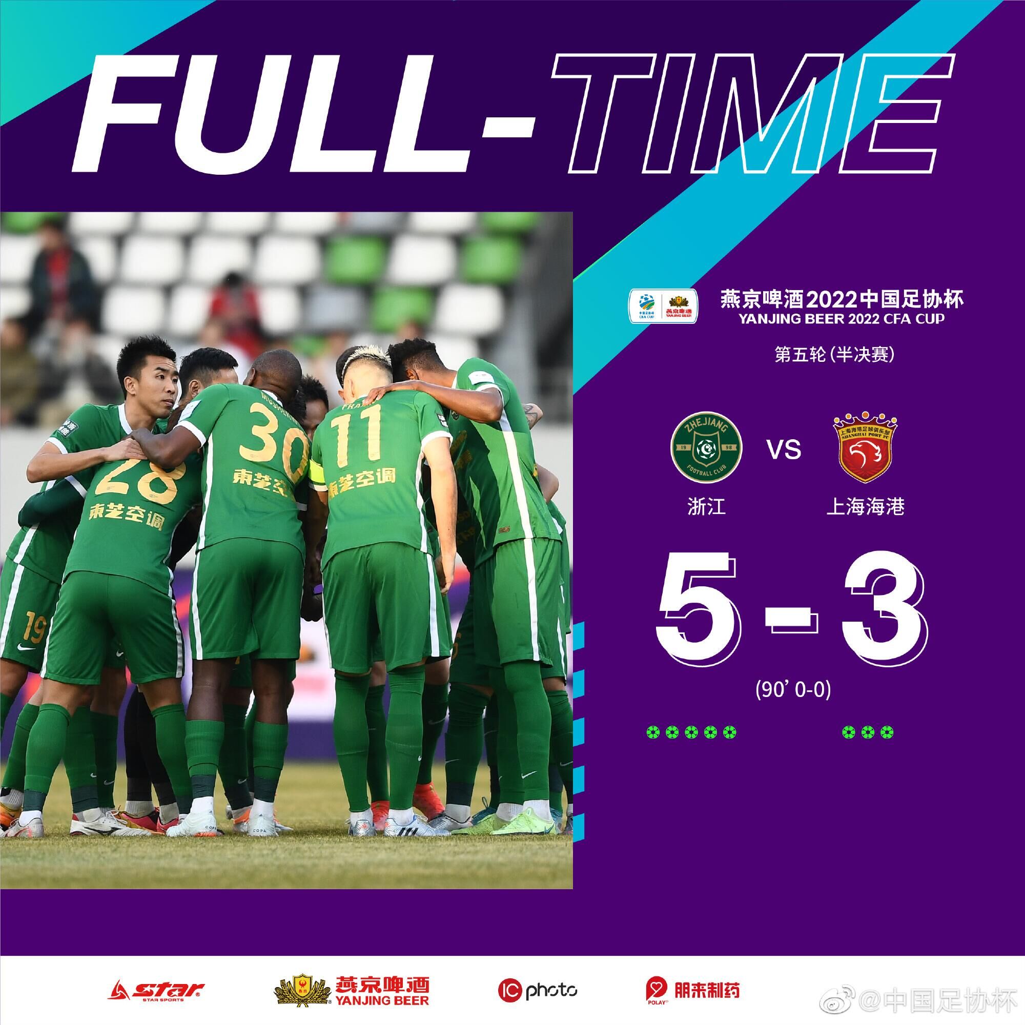 足协杯-吕文君失点 浙江点球5-3淘汰上海海港 队史首进决赛