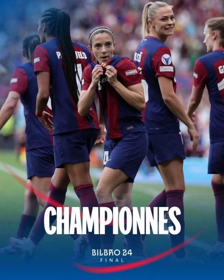 5月26日讯 北京时间5月26日凌晨0点整,2023-24赛季女足欧冠决赛在圣马梅斯球场展开角逐,巴塞罗那女足对阵里昂女足。上半场巴萨女足场面占优,下半场邦马蒂破门,亚历克西斯替补锁定胜局。最终巴塞罗那女足2-0战胜里昂女足,巴萨女足卫冕夺得女足欧冠冠军,本赛季巴萨女足已实现西女超杯、西女超、皇后杯与女足欧冠四冠王。
