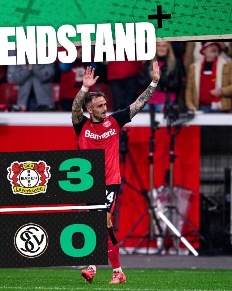 勒沃库森出场阵容:17-科瓦尔、23-穆基勒、4-若纳坦-塔、12-塔肯索巴、19-泰拉(69’20-格里马尔多)、25-帕拉西奥斯、34-扎卡(70’10-维尔茨)、13-阿图尔、7-霍夫曼(79’8-安德里希)、24-阿莱克斯(87’40-奥耶卡)、14-希克(79’22-博尼法斯)