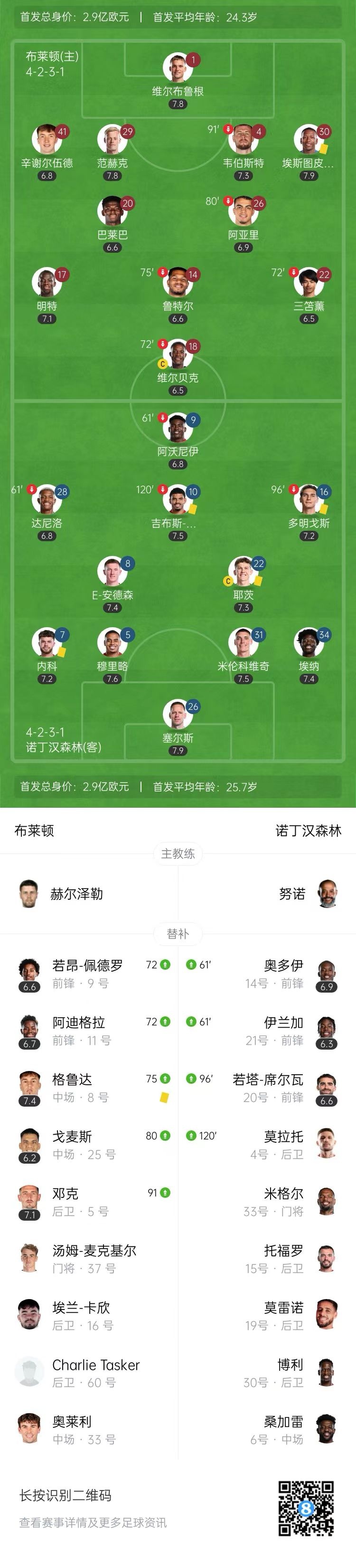 点球大战第四轮,戈麦斯主罚中路被扑出!米伦科维奇推射死角!布莱顿2-3诺丁汉森林!