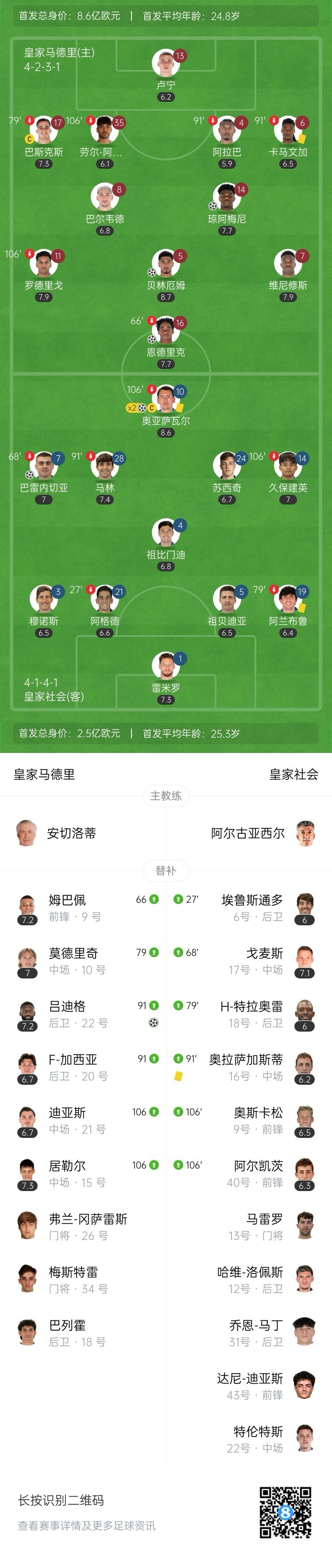 双方鏖战120分钟,皇马4-4皇家社会。