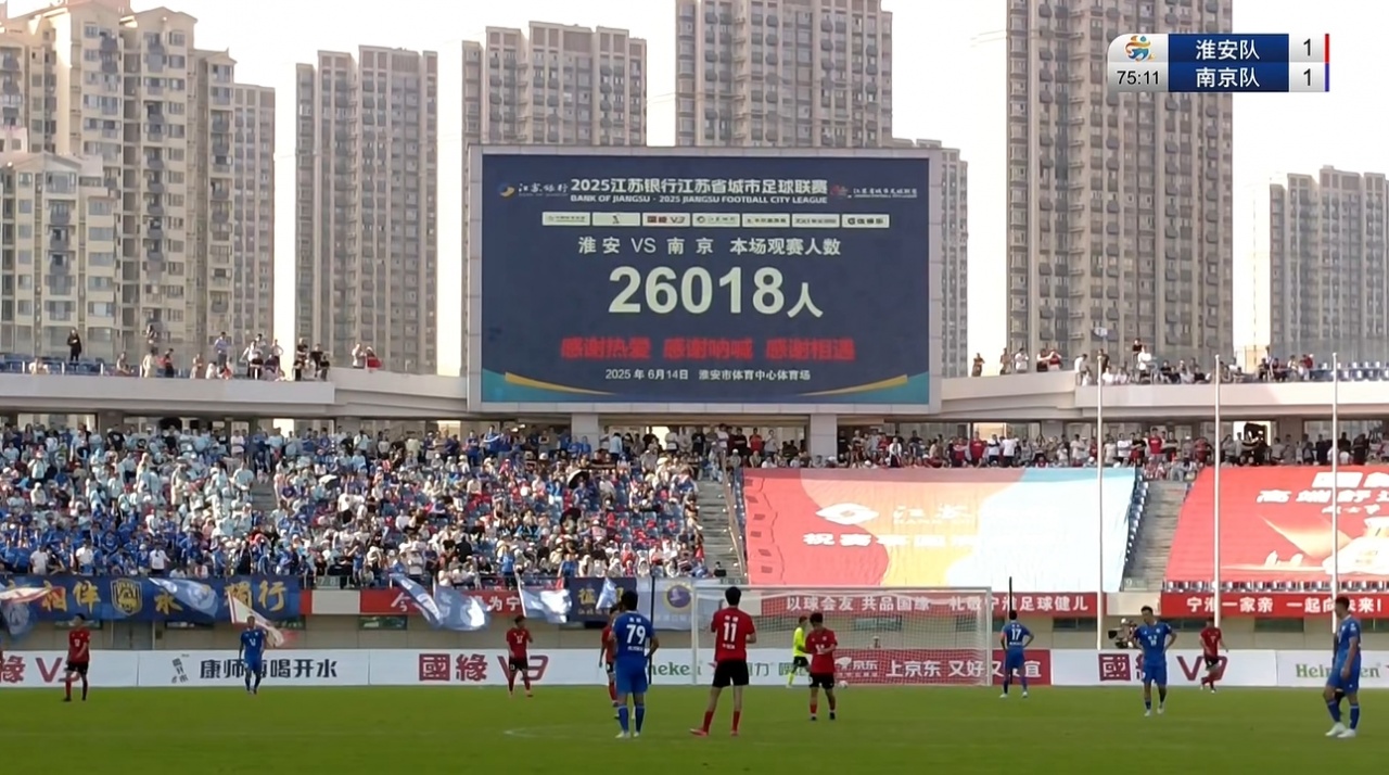 26018人观战超火爆!苏超-淮安1-1南京各取1分,南京仍居苏超第3