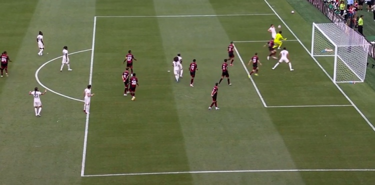 第43分钟,弗拉门戈右路任意球开到禁区,科尔维尔关键门线解围破坏↓