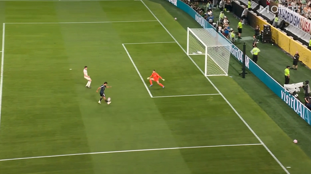 第40分钟,皇马打出一次反击,贝林厄姆中场送出直塞,维尼修斯得球后突破到禁区弧顶起脚低射破门,皇马1-0领先!↓