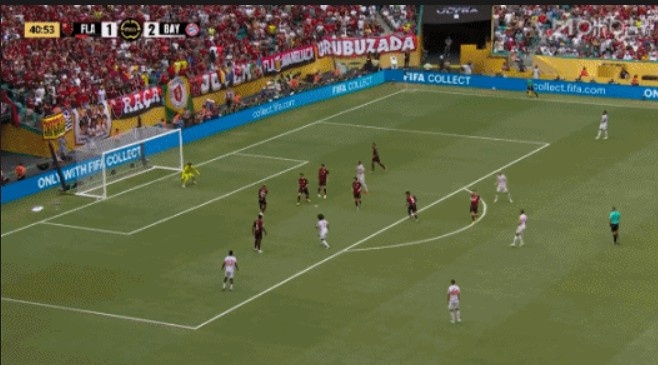 第33分钟,弗拉门戈左路进攻,阿拉斯凯塔做球,禁区中路热尔松跟进爆射,皮球如出膛炮弹在诺伊尔头顶重炮入网,弗拉门戈1-2扳回一城↓